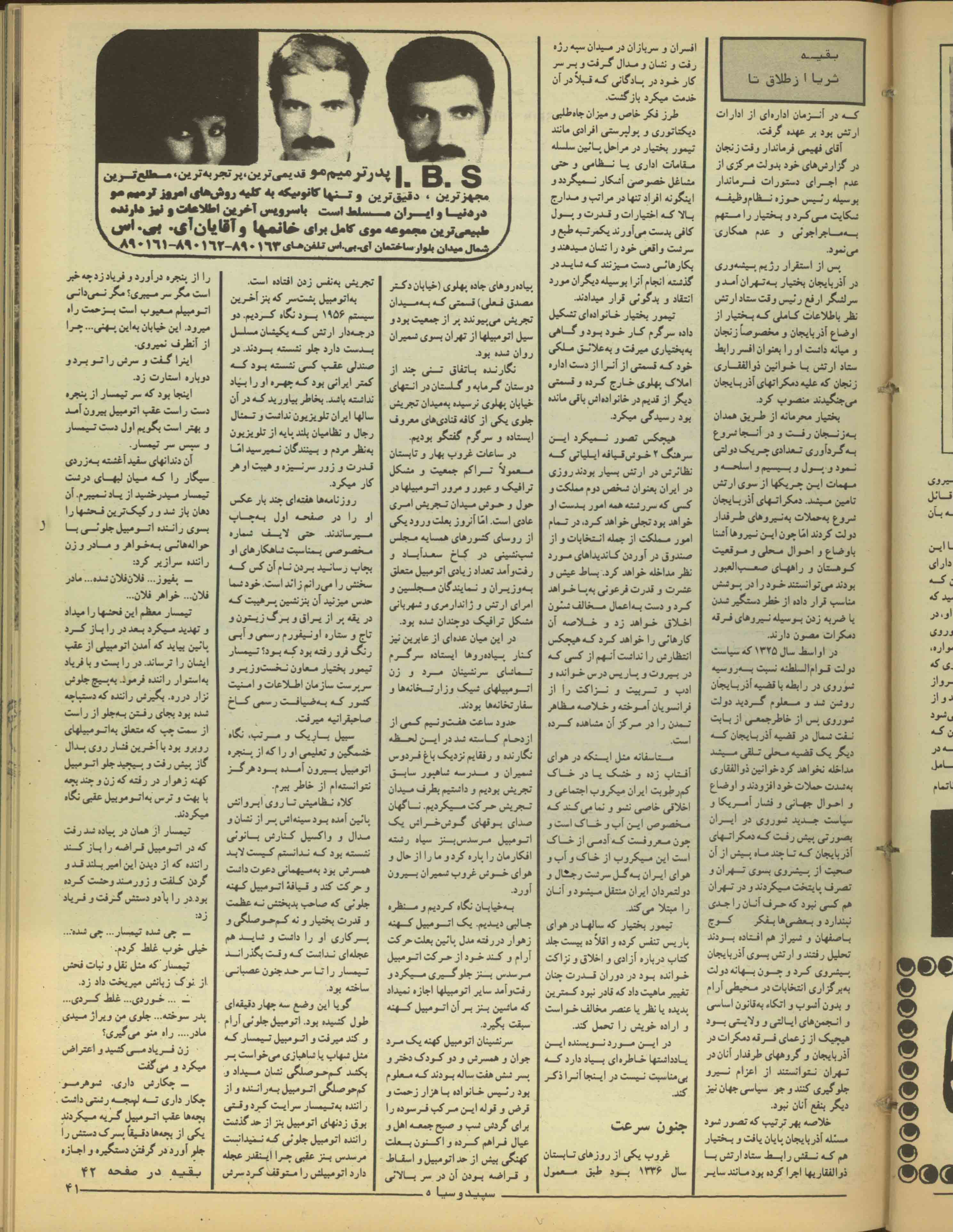سرنشینان اتومبیل کهنه یک مرد جوان و همسرش و دو کودک دختر و پسر شش هفتساله بودند که معلوم بود رئیس خانواده با هزار زحمت و قرضوقوله این مرکب فرسوده را برای گردش شب و صبح جمعه اهلوعیال آماده کرده و اکنون به علت کهنگی بیش از حد اتومبیل و اسقاط و قراضهبودن آن در سربالایی تجریش به نفسزدن افتاده است. به اتومبیل پشت سر که بنز آخرین سیستم 1956 بود نگاه کردیم. دو درجهدار ارتش که یکیشان مسلسل به دست دارد، جلو نشسته بودند. در صندلی عقب کسی نشسته بود که کمتر ایرانی بود که چهره او را به یاد نداشته باشد. به خاطر بیاورید که در آن سالها ایران تلویزیون نداشت و تمثال رجال و نظامیان بلندپایه از تلویزیون به نظر مردم و بینندگان نمیرسید؛ اما قدرت زور سرنیزه و هیبت او هر کار میکرد.