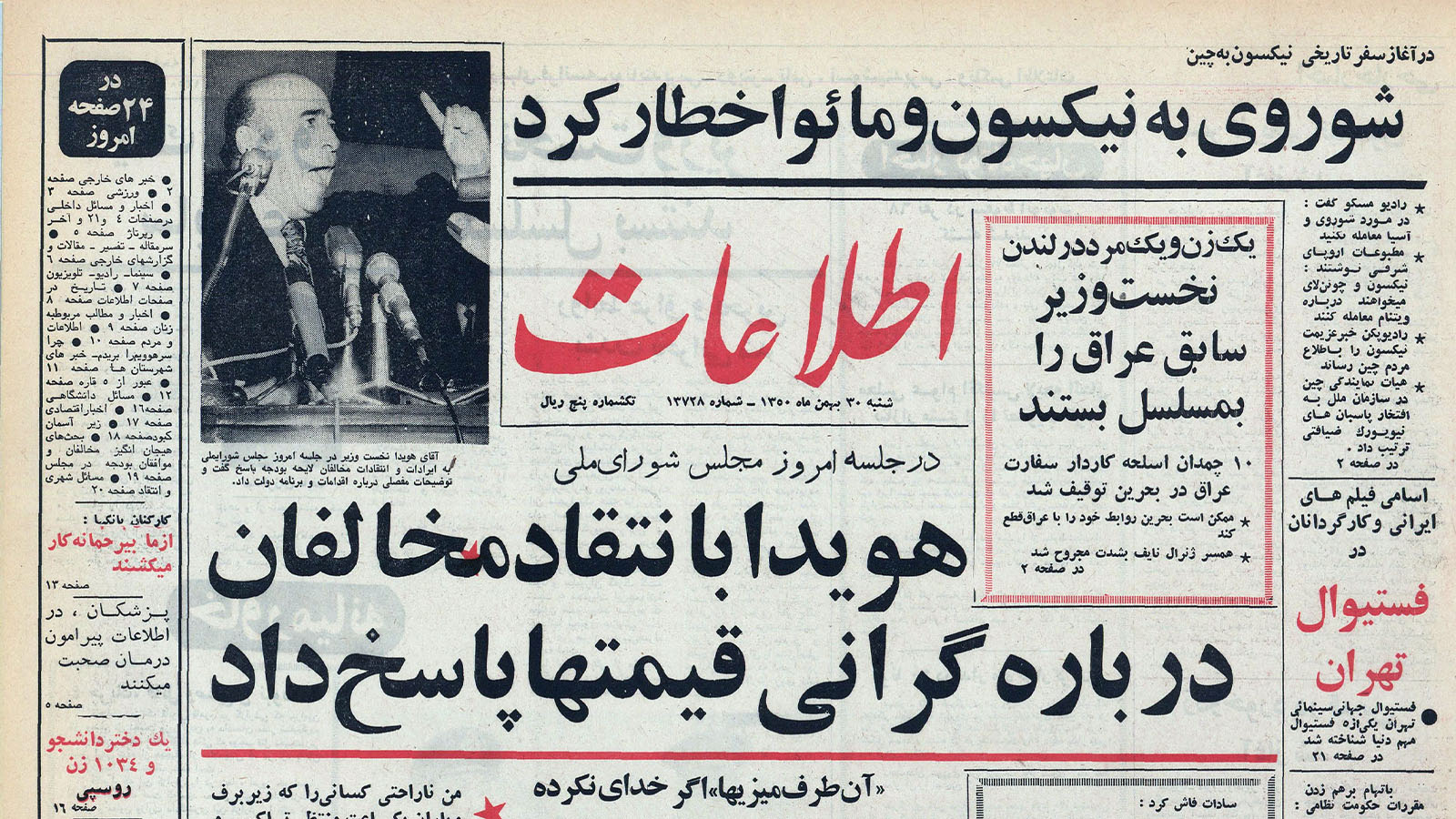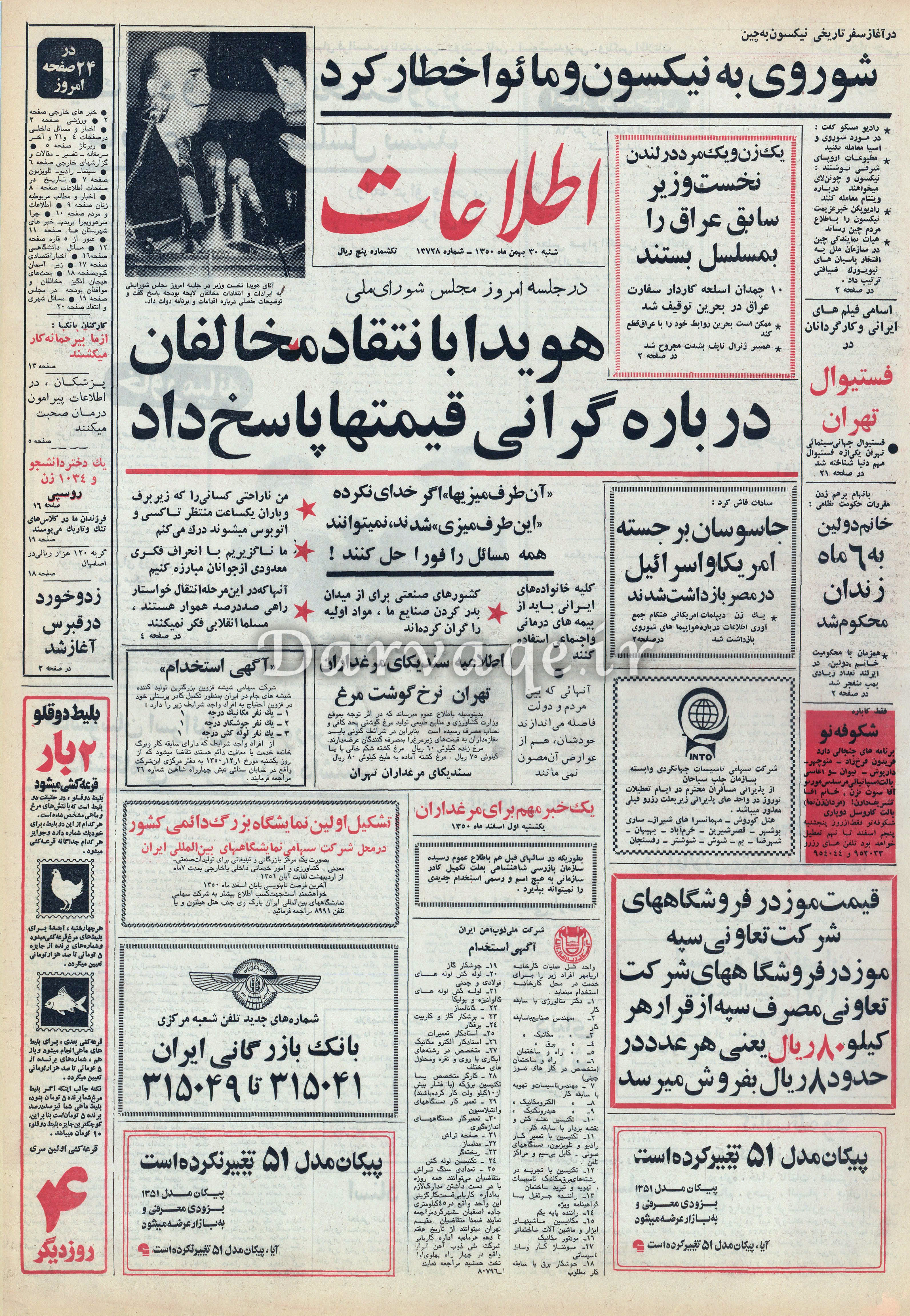 روزنامه اطلاعات 30 بهمن 1350